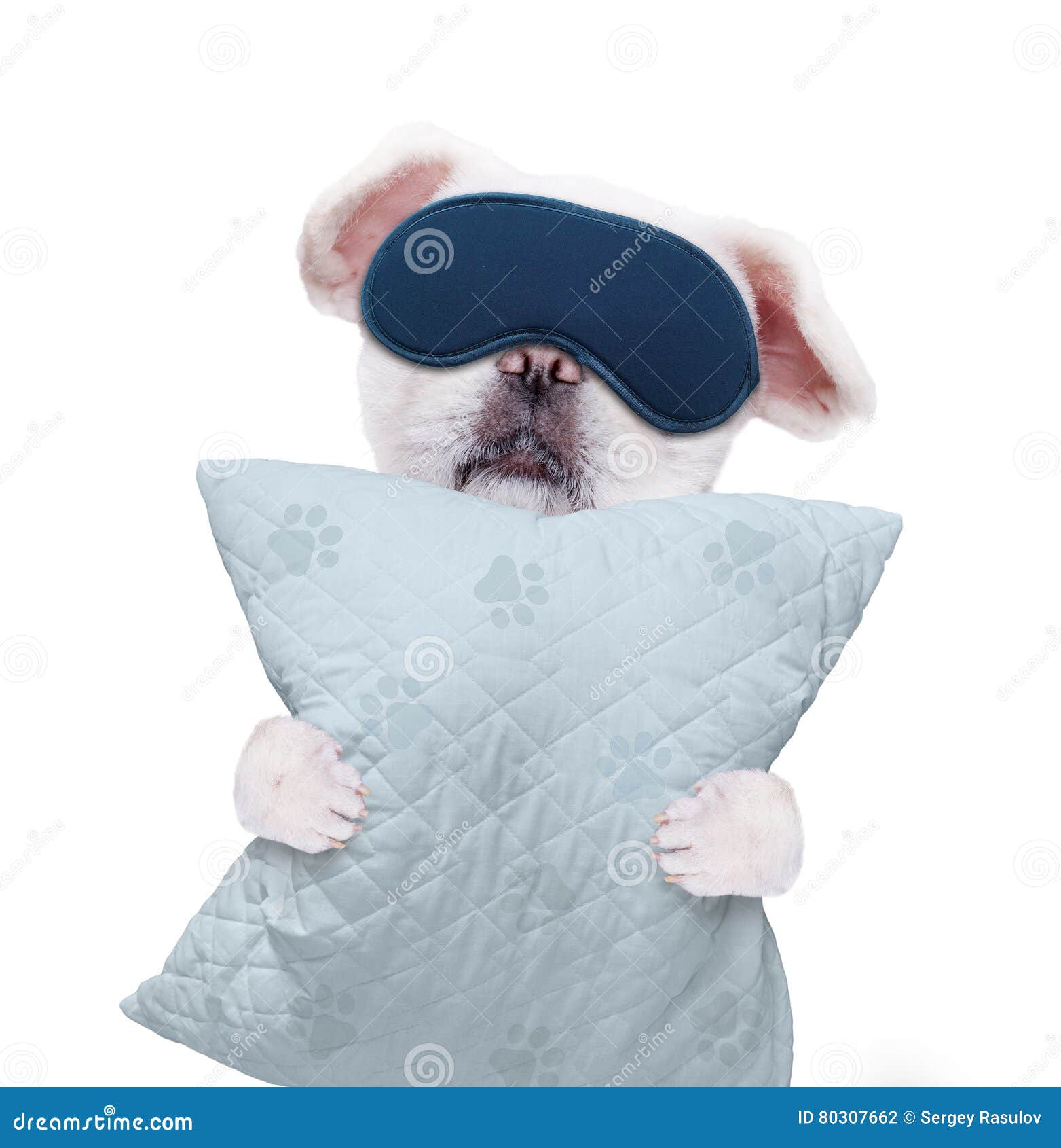 Dog With A Mask For Sleeping With A Pillow. Stock Photo ...